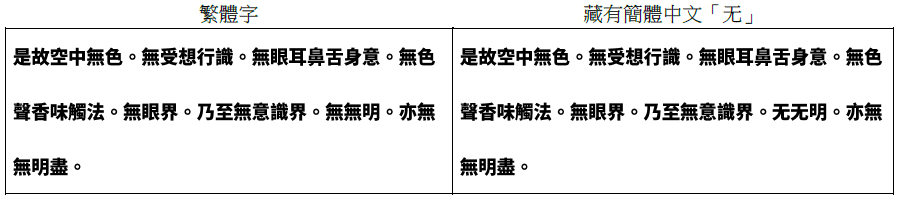 這個方法雖然簡單快速,但仍然有不少檢查不出來的例外,例如下圖中的簡體中文「无」就與其他字無異,無法靠這個方法抓出來。
